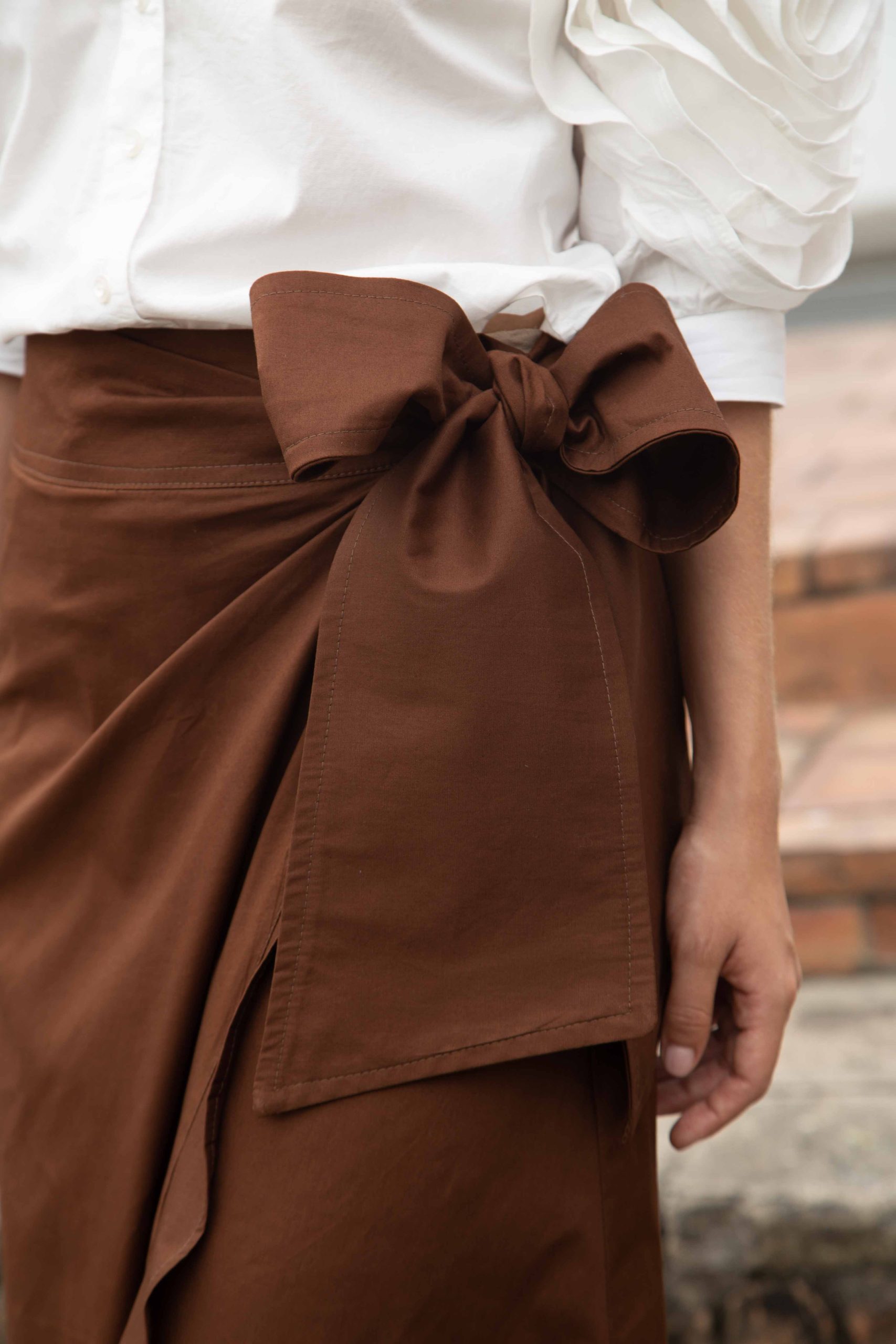 Una pieza que redefine el movimiento. Nuestra falda Éclat envuelve la silueta con una caída impecable y un vuelo escultural que acompaña cada paso con una elegancia casi hipnótica. Su diseño de corte envolvente, rematado con un lazo lateral sofisticado, abraza la cintura con ese toque de poder silencioso que distingue a la mujer Rosslyn.